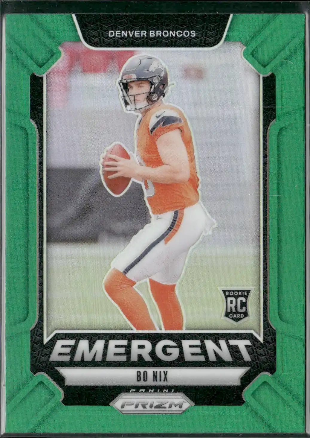 Panini Prizm Football 2024 | #3 Bo Nix – Denver Broncos | Green Emergent Rookie Card